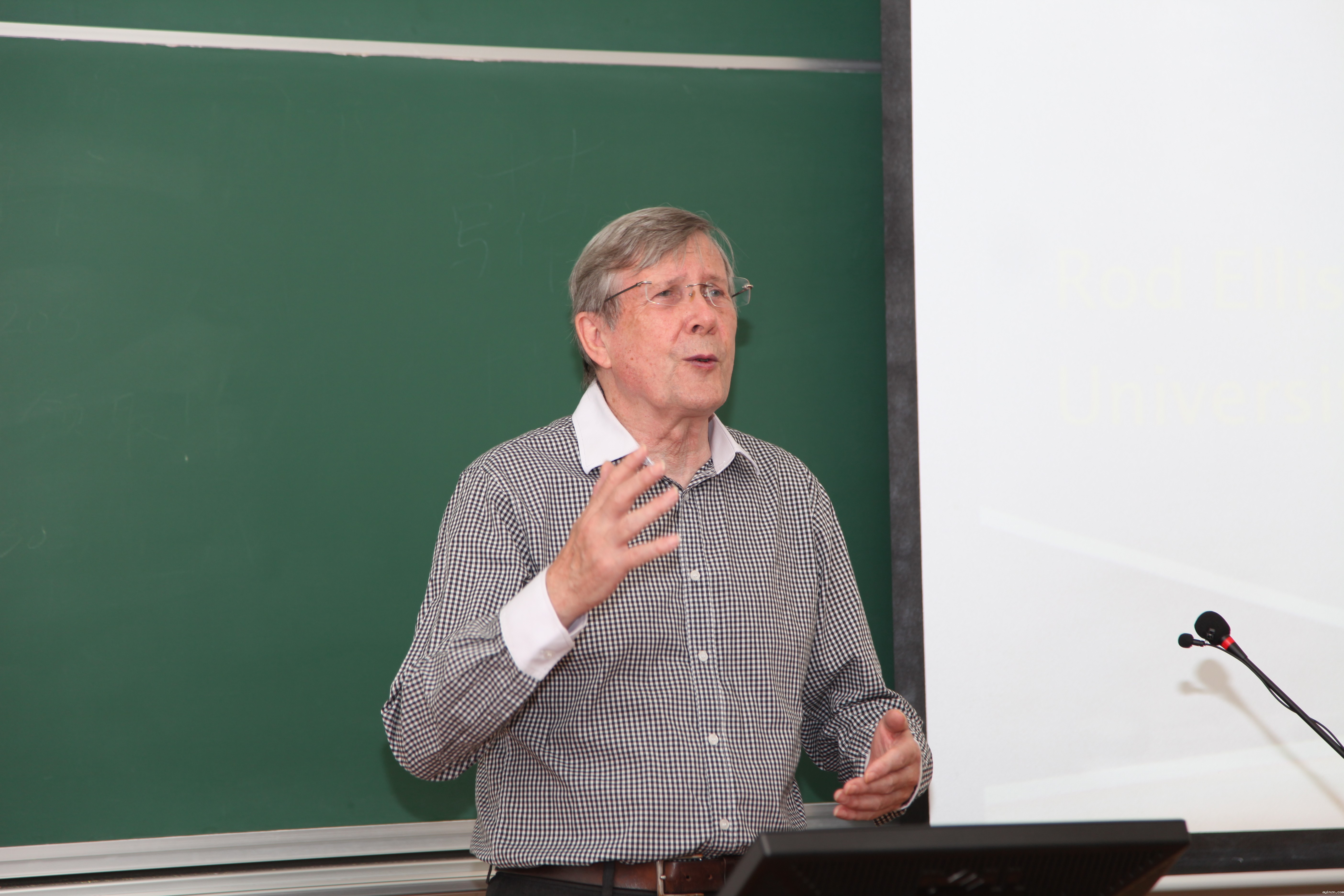 应我院邀请,国际知名学者、有“二语习得之父”之称的新西兰奥克兰大学Rod Ellis教授于7月10日来我院讲学。 Rod Ellis教授在校期间作了两场题为 “Consciousness-Raising Tasks for Grammar Teaching”和 “Using Tasks in Language Teaching”的学术报告。第一场报告Rod Ellis教授围绕语言中的显性知识和隐性知识进行了探讨并阐述如何通过用于提高意识的任务来教、学显性知识,同时他也分析了这些任务所具有的优势和局限性。在第二场报告中,Rod Ellis教授界定了“任务”的定义,阐释了在语言教学中使用任务的两种方式,即借用任务的教学和基于任务的教学,说明了对于任务的评价方式。