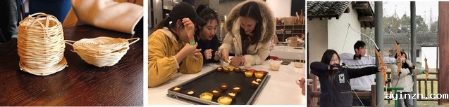 本次文化考察的互动环节为藤编制作,这是一门古老而神奇的编织艺术,也是国家级非物质文化遗产,同学们在手工老师的带领下,充分发挥无穷的想象力与创造力,编织出了各种各样精美的手工艺品,“太奇妙了,藤条经过一丝一缕的交错,就可以编织出精巧的杯子”,有同学如是说道。午后,同学们又都参与到射箭、钓鱼、喂养小动物、烘焙等游玩项目。在这里可以放松平时忙碌的心情,体味一下都市中少有的传统文化韵味,不经意间就会留下了许多难忘而美好的回忆。下午三时,全体师生乘车返回上海,结束了此次令人愉悦的文化之旅。