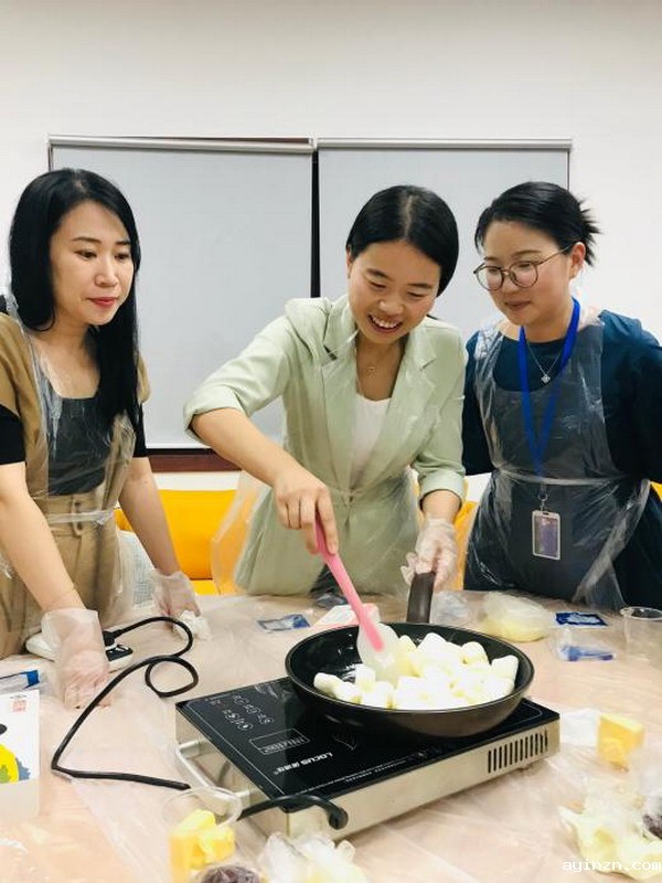 随着黄油在锅中滋滋化开、棉花糖在锅中咕嘟咕嘟变粘稠,……雪花酥终于在经历了冰火两重天后,以软糯甜香的口感融化于大家的口中。这份甜蜜和温情,包含着成功的喜悦,也包含着合作分享的愉悦,久久沁润在每个老师的心里。