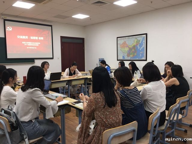2018年9月27日晚上七点,国际文化交流学院2017级研究生党支部在光华楼东主楼811会议室开展了以“树立国际视野,弘扬传统文化”为主题的组织生活会,支部书记李洁老师主持会议。学院教二党支部书记杨蓉蓉老师受邀与支部党员们进行交流。