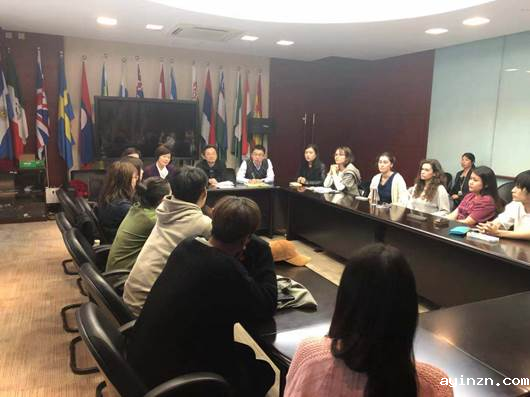 2018年10月26日中午,国际文化交流学院2018级新生座谈会于光华楼东主楼1001会议室召开。党总支书记王颖老师、院长吴中伟老师、副院长胡文华老师、副书记郑阳老师、教学办主任董新萍老师、学工办副主任吕瑞卿老师、2018级本科生辅导员杨茗薇等参加了座谈会,会议由郑阳副书记主持。