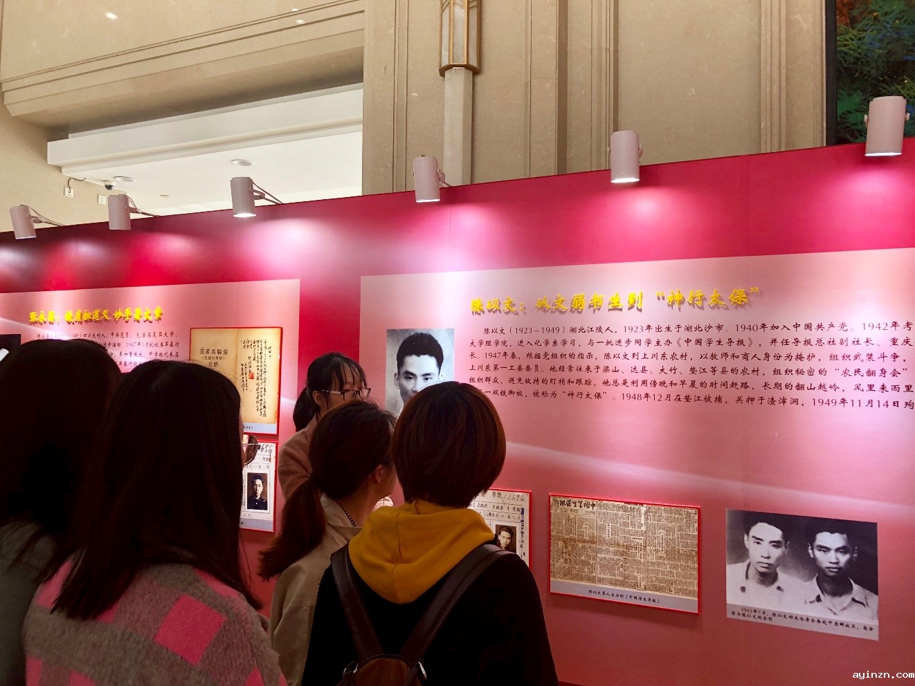 听完讲解,同学们又都自觉地重新依次阅读墙上每一位烈士的事迹,并结合讲解讨论起来。曾经这些伟大的校友在全民族抗战时期和解放战争时期,与国统区党内外人志士一起争取民族解放和人民民主,风雨如磐的岁月,他们被捕入狱、关押、酷刑,最终殉难于军统营中。但是,他们也以鲜血锻造了伟大的红岩精神。同学们纷纷表示深受触动,通过这次展览更真切感受到“崇高思想境界、坚定理想信念、巨大人格力量和浩然革命正气”的力量。