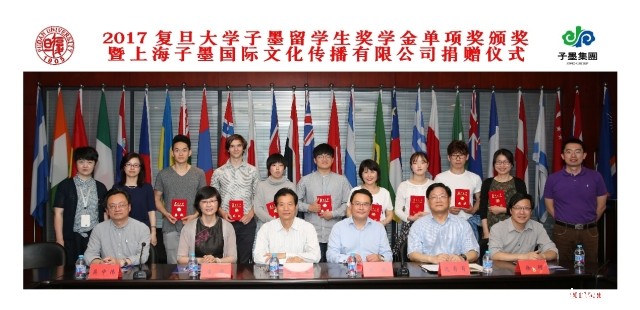 5月26日下午, 2017复旦大学子墨留学生奖学金单项奖颁奖暨上海子墨国际文化传播有限公司捐赠仪式在光华楼东主楼1001会议室隆重举行。