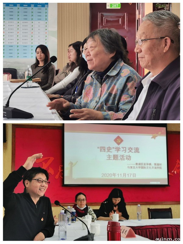 随后,国际文化交流学院党委书记王颖向金泽镇党委、镇政府为学院提供如此好的“四史”学习机会表达了诚挚感谢。她交流了复旦大学治学办校的“红色基因”,教育强国、立德树人、与时代同频共振的发展理念,以“一流育人质量、一流学术成果、一流社会贡献”创建中国特色世界一流大学的发展目标,同时也就国际文化交流学院讲好中国故事、传播好中国声音,服务好国家对外合作战略的国际化办学特色做了分享。