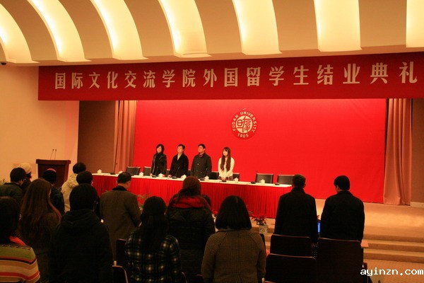 1月22日上午9点,在复旦大学校歌声中,我院2010年秋季汉语进修生结业典礼在光华楼东辅楼隆重举行。典礼由胡文华副院长主持。朱永生院长作了热情洋溢的讲话,祝贺同学们在与中国零距离接触中圆满完成了在复旦的学习,勉励同学们在以后的学习工作中继续努力,欢迎同学们有机会常回母校看看。教师代表谈蓓丽肯定了同学们在复旦取得的点滴成绩,并对同学们寄予了良好的祝愿。学生代表阿部洋美回顾了她在复旦大学充实而难忘的学习生活,表达了自己对复旦的依依不舍之情。