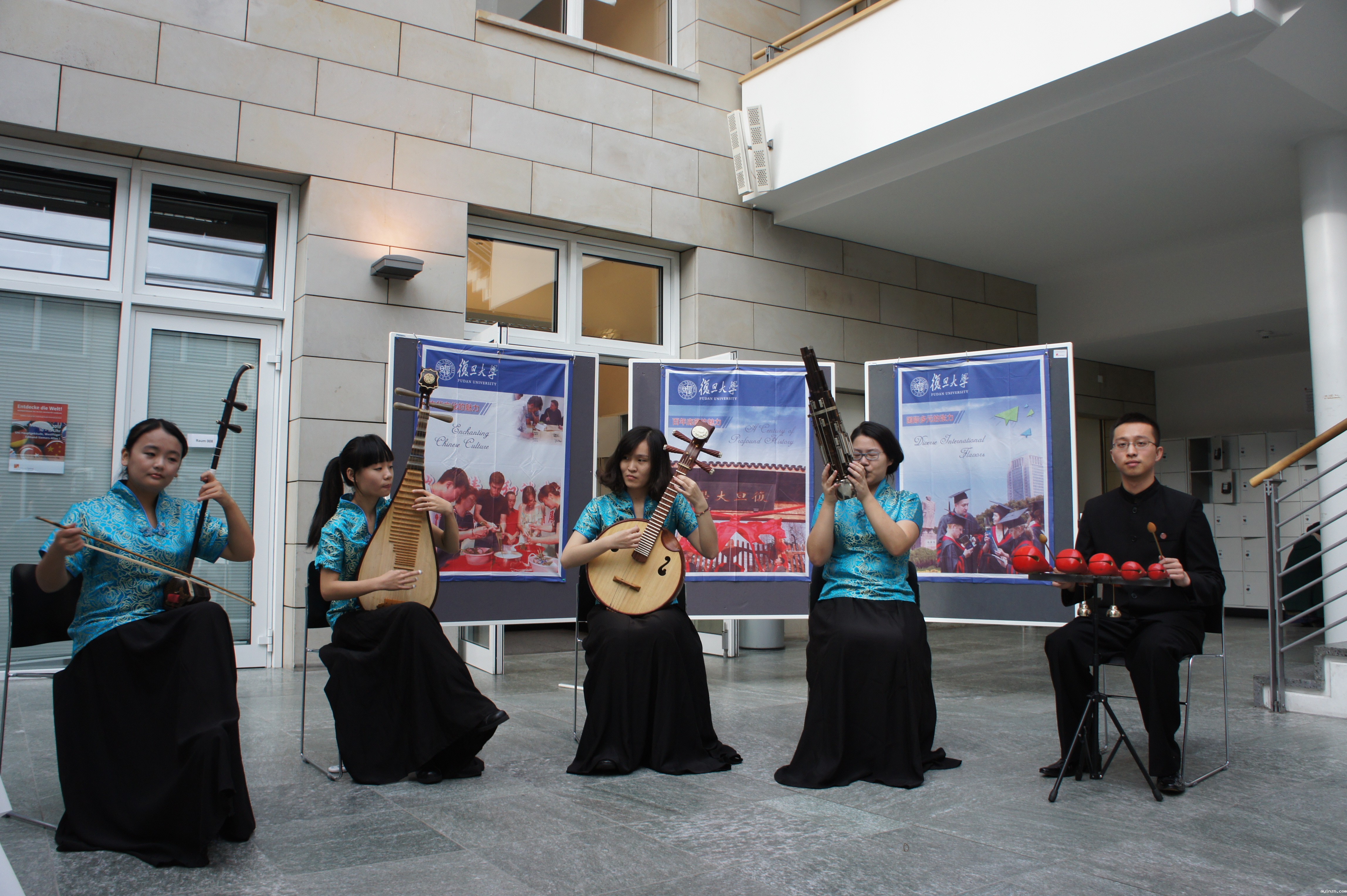 10月10日至16日,“复旦日·2013德国”活动先后在德国汉堡大学、莱布尼茨大学、法兰克福大学举办。“复旦日”活动通过巡展、学术讲座、文艺演出等形式从多个角度向德国学生展示了复旦大学的形象。此次“复旦日”活动由孔子学院办公室、外事处协同国际文化交流学院、外国留学生工作处、校学生艺术团共同举办。复旦大学在海外的孔子学院——新西兰奥克兰大学孔子学院、瑞典斯德哥尔摩大学孔子学院、英国诺丁汉大学孔子学院、英国爱丁堡大学苏格兰孔子学院、德国法兰克福大学孔子学院、德国汉堡大学孔子学院、澳大利亚悉尼大学孔子学院共同参与了此次活动,展示了各孔院的汉语教学情况、学术交流情况和特色文化活动。