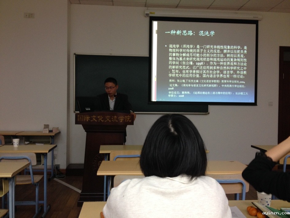 2013年12月17日下午,国际文化交流学院的青年教师徐晓羽老师站在光华楼东主楼1001室(国际文化交流学院的会议室)圆桌前,面对来自全院以及来自外系的教师、研究生侃侃而谈,在她富有逻辑的推导演绎下,“一度”这个平平常常的词,像个孩子一样开始长大起来:它是如何成为一个词,如何从跟天文单位有关,一步步演变成动量词,然后是时间副词,这个词汇化和语法化过程背后的动因是什么,有什么普遍意义。主题发言一结束,陶炼副教授、刘鑫民教授、陈潮教授、张豫峰教授、吴中伟教授、王一平副教授……近二十位老师先后发表了他们对这个问题的看法,内容涉及语料分析、语言理论、语言融合等方方面面。持续两个小时的讨论结束后,徐晓羽老师深感这次讨论收获很大,得到的意见极富建设性,并打算在此基础上进一步完善论文。不仅徐晓羽老师本人,各位与会老师、研究生也在不同思想的碰撞中,捕捉到了学术的火花,沉浸在学术讨论的热烈气氛中,享受着学术思考带来的快感,激发了进一步研究的动力。