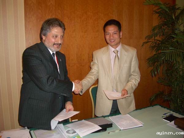 布宜诺斯艾丽斯大学语言中心Carlos Bell主任与彭增安副院长签订合作交流协议。