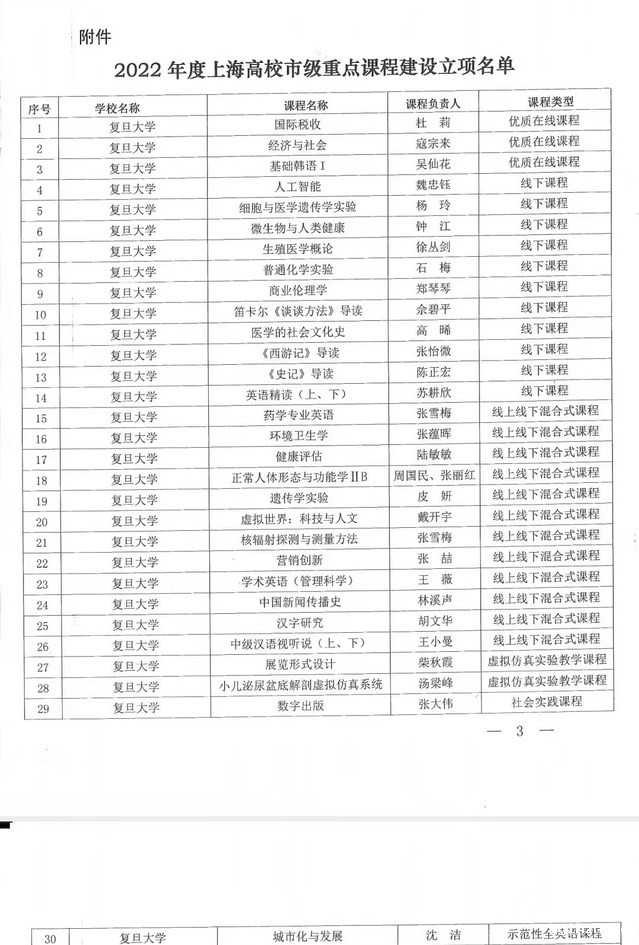 近日,上海市教委公布了2022年度上海高校市级重点课程建设立项名单,复旦大学有30门课程获得立项,其中,我院胡文华团队的“汉字研究”和王小曼团队的“中级汉语视听说(上、下)”获得线上线下混合式课程建设立项,建设周期为2年。两位课程负责人表示,将对标建设要求,高质量地完成建设目标和任务。